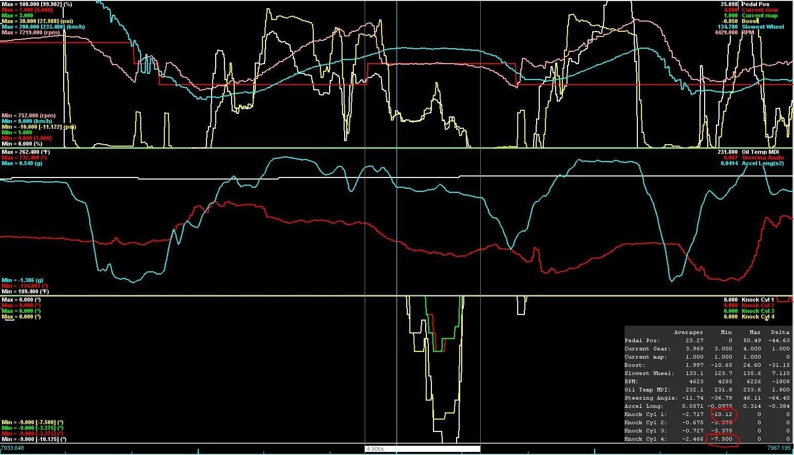 As far as how the car did, it had no issues all weekend. I DID swap back to a regular (non-vented) MK8 PCV valve after what happened at Fastivus 2024. Over the course of the entire weekend, I had one single big knock event, where two cylinders showed -10.12 and -7.50 deg of KR. I would see -3.00 deg on all cylinders at other times, but since my knock sensors are not heavily numbed, I’m just letting the ECU do it’s thing and knock the timing down as temps rise. I also think I may be a tad too aggressive on the timing for that particular map for track use so may just dial it back a bit and see what happens. It is worth noting that the only oil I got in my catch can (inline w/ MK8 PCV full retrofit) was minimal. Approximately 3-4mm of oil at the bottom of it after each day.