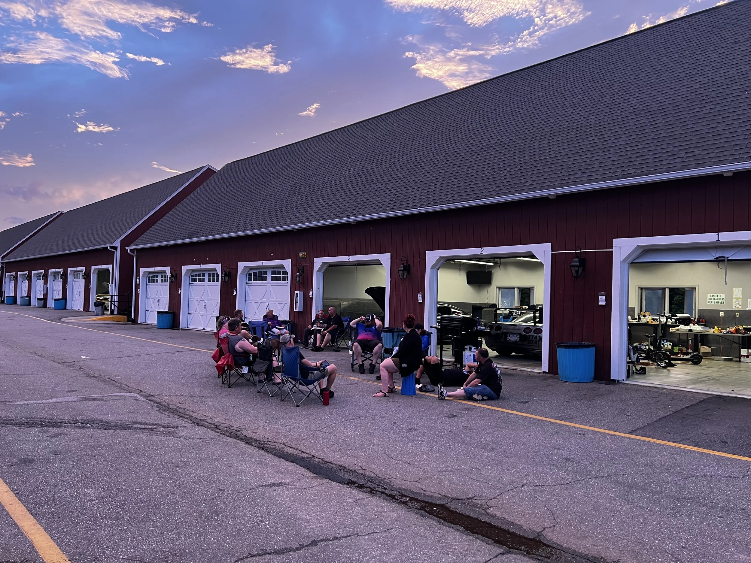 After hitting 20,000 steps for the day on the track walk, a bunch of us made our way back to the garages, grilled out some burgers and hot dogs, and bullshitted for several hours. Really getting to sit back, socialize, and relax like this hasn’t really happened in a while - we’re normally trying to fix something, or do a bunch of work to the cars, etc. It was really great to just relax. Anybody who wandered by was welcome to pull up a chair and hang out, and there was a pretty regular filtering of people in and out as the night went on. This was probably my favorite memory as far as non-driving times of the weekend go.