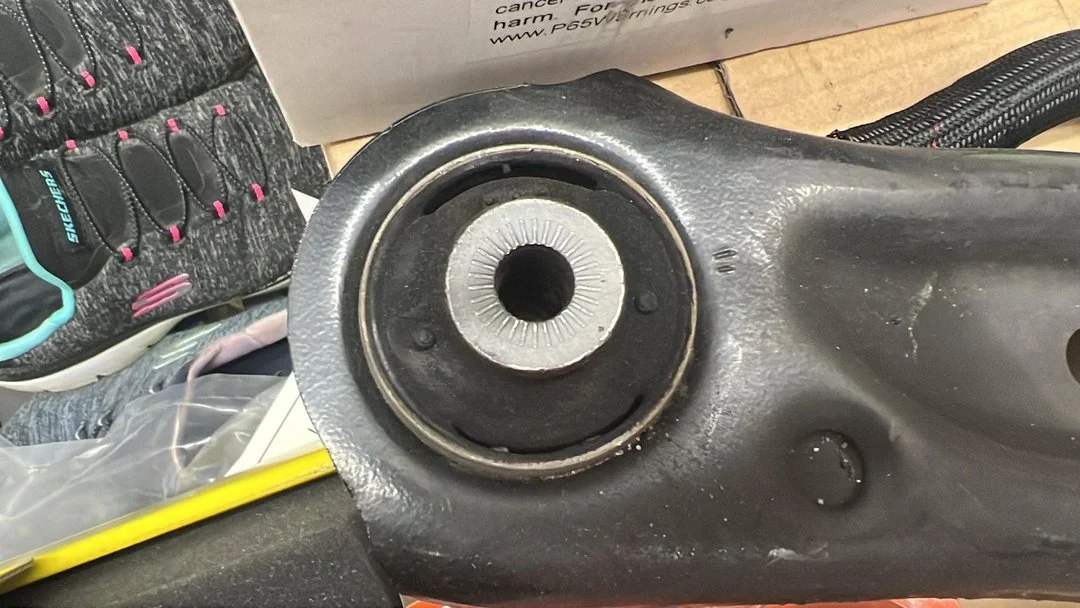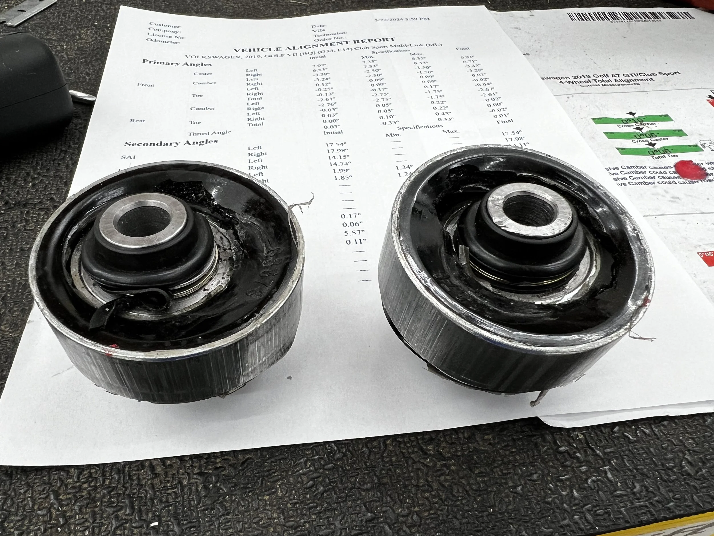 So I busted ass and dropped the subframe for the second time in a week, bled the brakes, swapped the DS3.12s and DS1.11s on for track, and put a few other little tidbits on the car that would hopefully help with the brake cooling. I reinstalled some old/used MK8 rear lower control arm bushings to get through the weekend (which are closer to solid than OEM MK7 bushings). My BFI bushings were already showing signs of tearing, and the MK8 GTI/R bushings have very small voids which allow for the needed flex up and down for suspension travel.
